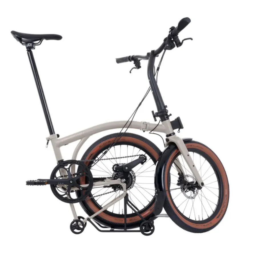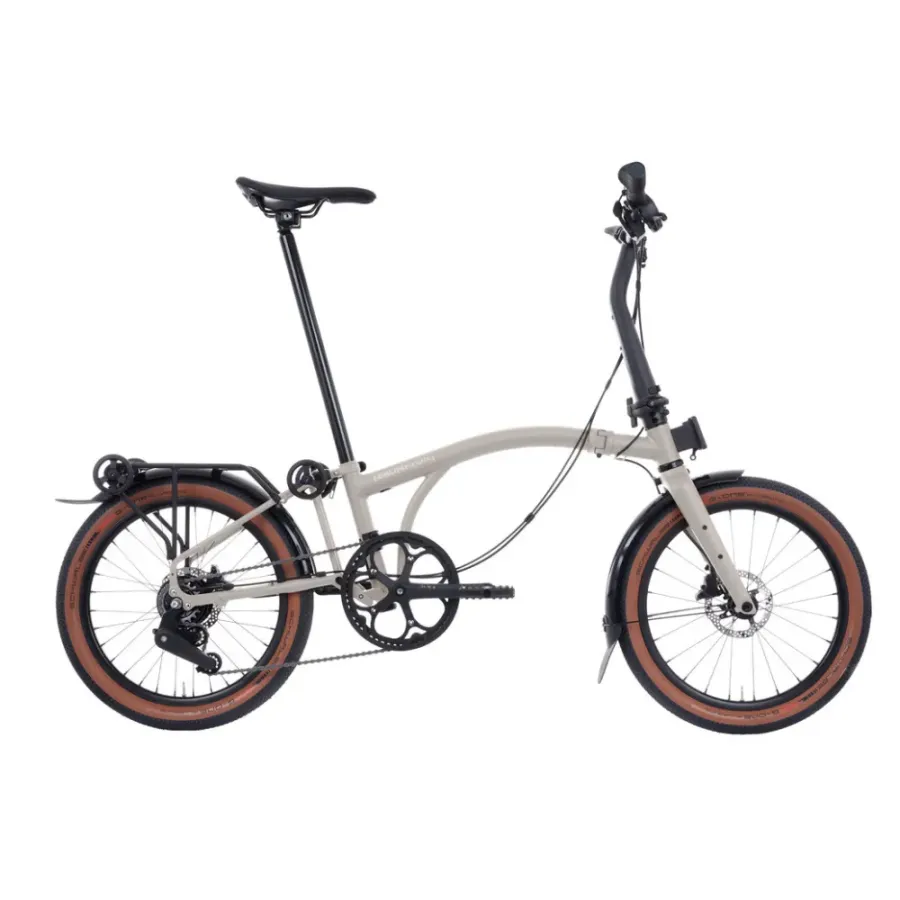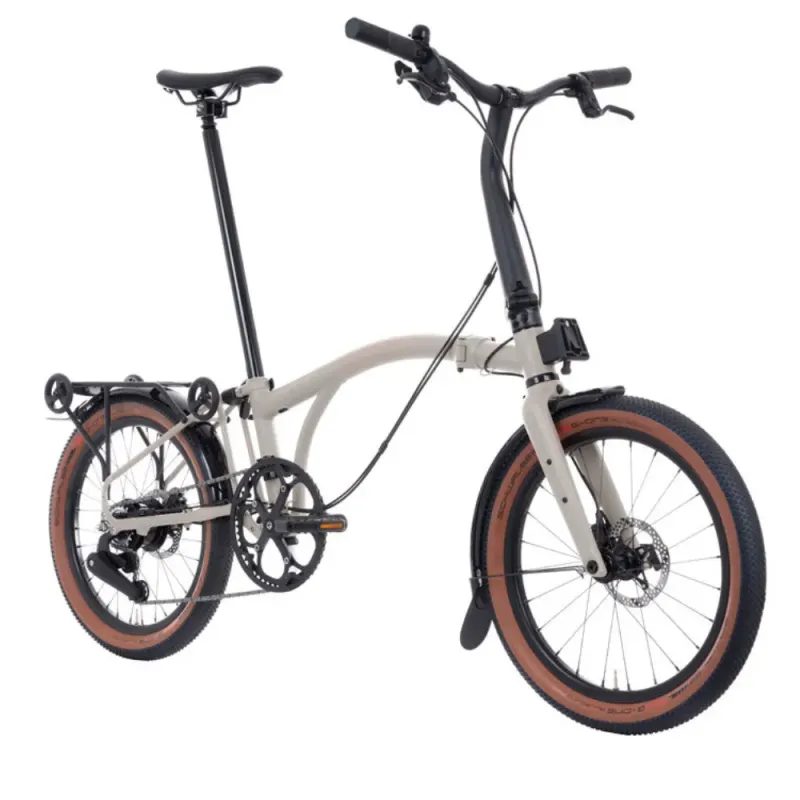 Il est équipé du bloc porteur à l’avant qui permet de transporter un bagage compatible Brompton.